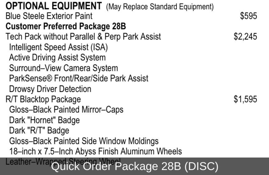 Apple CarPlay, Apple CarPlay/Android Auto, Dark Hornet Badge, Dark R/T Badge, Driver Seat Memory, Fully automatic headlights, GPS Antenna Input, Lane Departure Warning System, Memory seat, Power driver seat, R/T Blacktop Package, Radio: Uconnect 5 w/10.25" Display, Spoiler, Tech Pack w/o Parking, Wheels: 20" x 8" Abyss Finish Aluminum. Recent Arrival! Clean CARFAX. Blue Steele