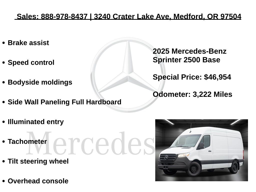 Mercedes-Benz Sprinter 2500 Cargo 144 WB 3D Cargo Van RWD 2.0L I4 Diesel Turbocharged High Output