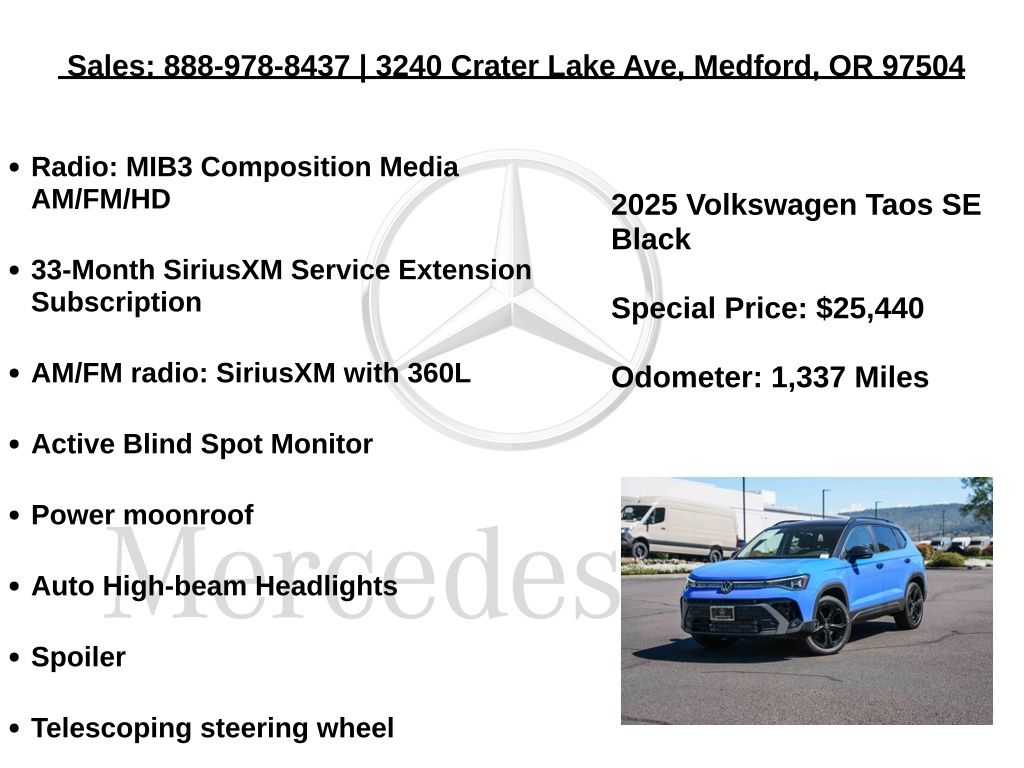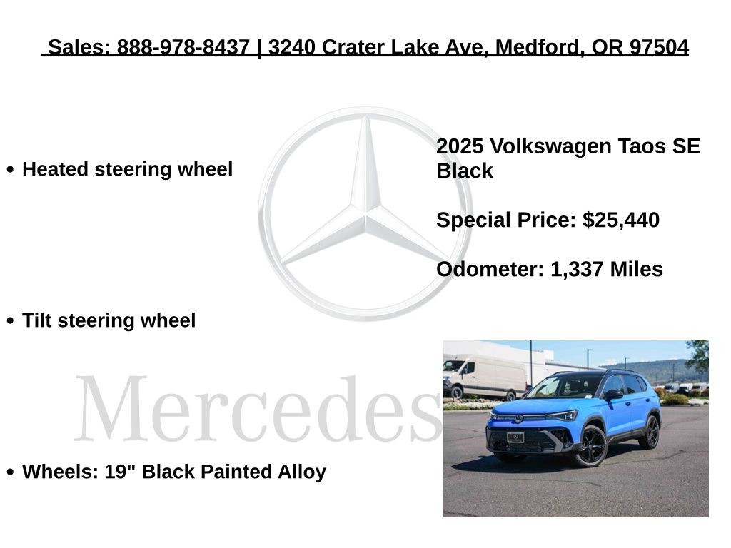 Volkswagen Taos 1.5T SE Black 4D Sport Utility AWD 1.5L I4 Turbocharged DOHC 16V LEV3-SULEV30 174hp 25/33 City/Highway MPG